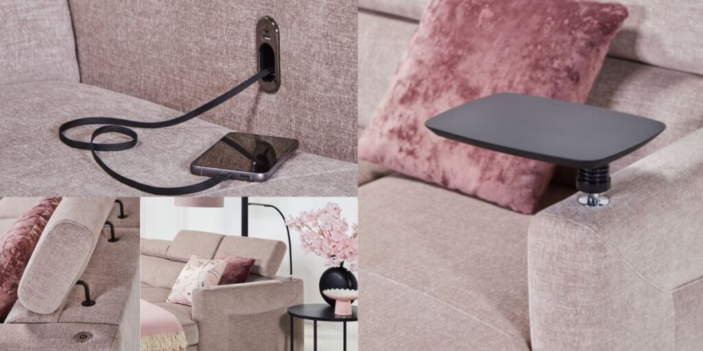 Akcesoria dodatkowe możliwe do zamówienia (płatne dodatkowo): drewniany obrotowy stolik, gniazdo do ładowania, lampka LED. Akcesoria nie są uwzględnione w cenie!